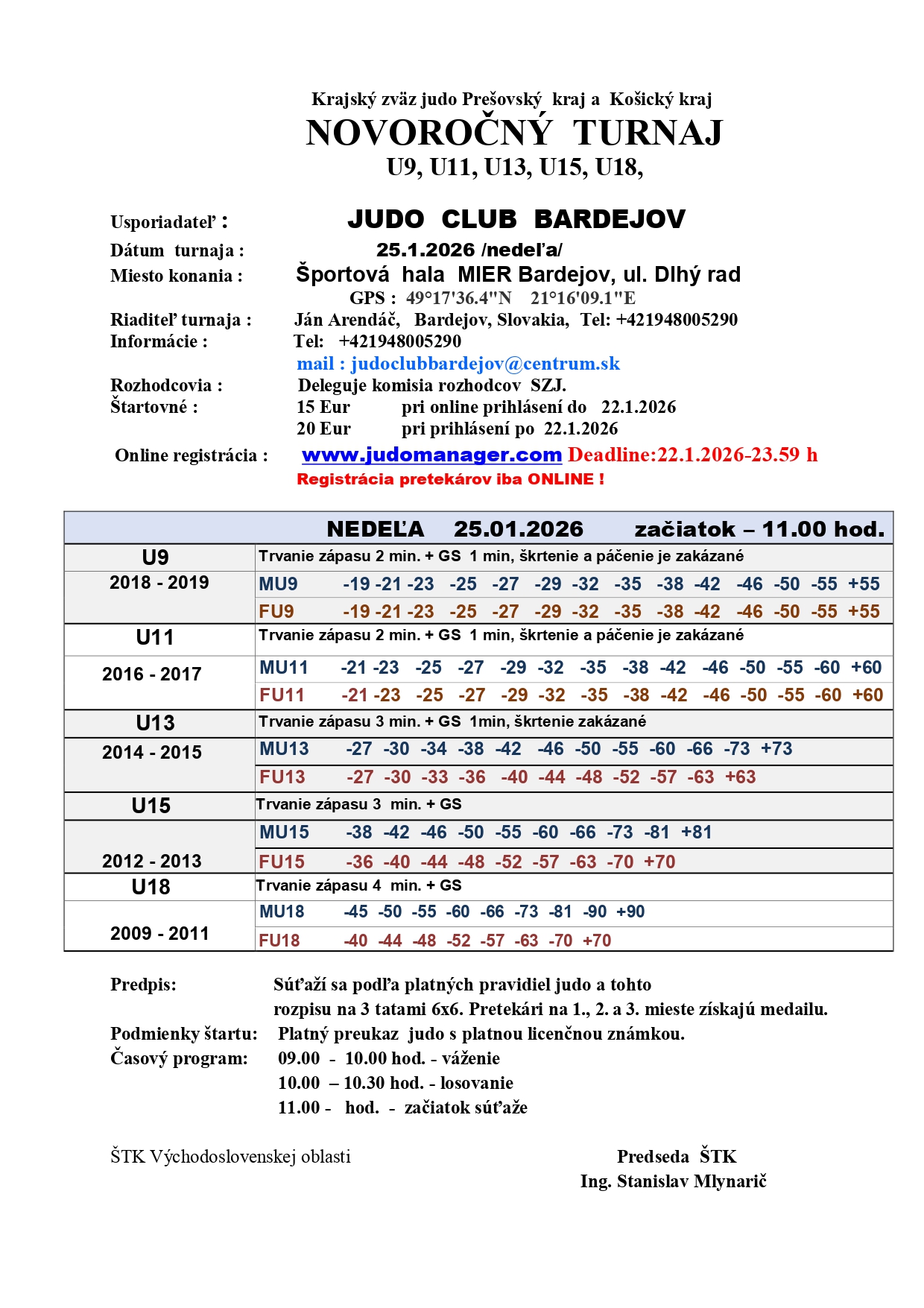 MŠK Vranov nad Topľou - oddiel judo Ul. Dr. C. Daxnera 87 Vranov nad Topľou 093 01